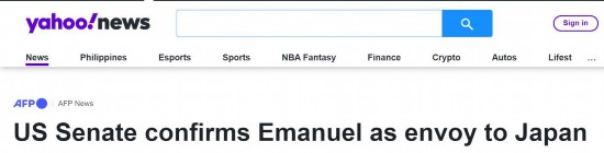 【环球网快讯】综合法新社、雅虎新闻网站刚刚报道,美国国会参议院18日批准前芝加哥市长拉姆·伊曼纽尔为新任美国驻日本大使,填补了自2019年7月以来该职位的空缺。