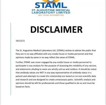 《每日快报》进行测试的圣奥古斯丁医学实验室19日也发布声明称,该机构没有受任何媒体委托,参与到以评估疫苗可靠性为目的的分析中。该实验室强调,抗体滴度在任何情况下都不能代表患者的抗体状态,试图建立这种联系的行为并不是基于真正的科学数据和研究,而是旨在制造不必要的恐慌。圣奥古斯丁医学实验室主任拉姆萨兰也在接受当地媒体采访时表示,“用于得出(《每日快报》报道中)结论的测试方式绝对是错误的,这是向公众传播可怕的错误信息。”