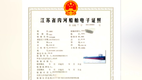 据了解,根据现行审批制度,正常营运的内河船舶需要持有的船舶证书多达十几种。对航运企业而言,办理周期长、跑办次数多,且不便于携带、保管,严重影响了航运效益的发挥,成为内河航运在优化营商环境方面的短板。“刚刚发放到这本船舶电子证照,是将以往船舶所有权证书、船舶国际证书、船舶检验证书、船舶最低安全配员证书,还有船舶营业证合在一起,变成真正意义上的一本证书。这一本证书对船员船公司来讲,它不用再像以往那样跑不同的部门去重复办理,提供重复的材料。”省交通综合执法局船务管理科副科长沈健表示,多证合一电子证书实施后,不仅首次办理时更加方便,还把船舶的多种证书的有效期合并在了一起,减少了证件到期后船东办理的次数,船舶如有抵押、光船租赁等行为,也更加方便查询、办理。