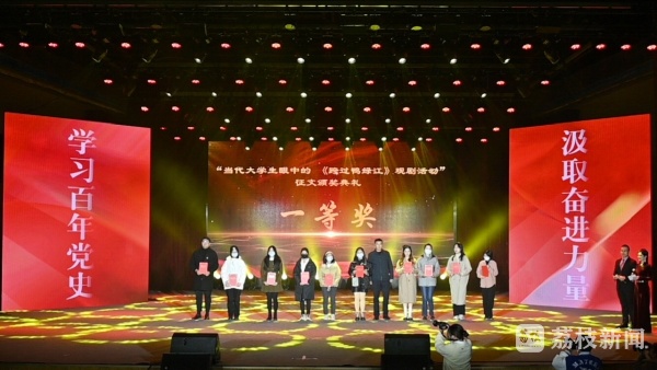 我苏网讯 “学习百年党史,汲取奋进力量。”为庆祝中国共产党建党一百周年,引导广大师生弘扬爱党爱国精神,南京传媒学院深入开展了多种形式党史学习主题教育活动。为表彰鼓励党史学习主题教育活动中的先进典型,12月20日晚,“当代大学生眼中的《跨过鸭绿江》观剧活动”征文颁奖典礼暨庆祝中国共产党建党一百周年学党史主题教育活动在南京传媒学院实验剧场隆重举行。