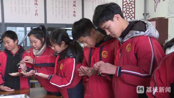在宿迁泗阳,四十名留守儿童在老师的指导下,学习包饺子。铺开面皮、放上馅料、蘸上水,使劲儿一捏……一个个形态可爱的饺子摆满了餐盘。泗阳县第二实验小学六年级学生张子文:“吃上了热腾腾的饺子,很美味,很温暖,有一种像在家里吃饺子的感觉。”吃完饺子,孩子们回到教室,听老师讲冬至的知识,从起源到发展,再到传说与习俗。