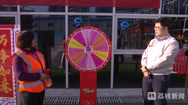 项目部还组织了小游戏,这个"幸运大转盘"就很受欢迎。火车票、大礼包、冬至大红包……木工师傅王桂玲特别幸运,得到了500元现金红包。她说,要把这个幸运的红包给小外孙,希望孩子新的一年里健康快乐。