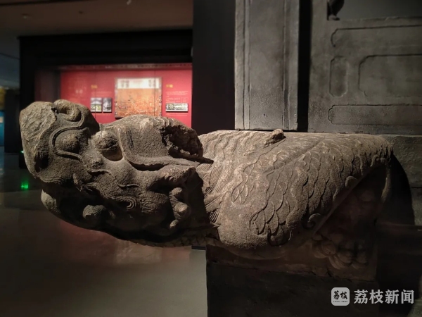 南京城墙博物馆内的这座石螭首来自明代皇宫,推测原置于奉天门基座东南角,即南京明故宫正殿前门,门内曾是皇帝接见大臣议事的奉天殿。螭首全长1.86米,高1米,最宽处1米,前端雕刻成螭首状,后端为楔形榫头,可套嵌在建筑物上。整体造型浑厚有力,有明初时期酣畅淋漓的风格,由此可见当时明故宫的恢宏壮丽。