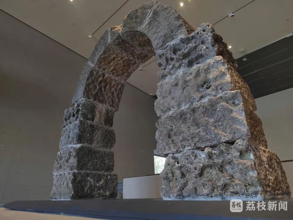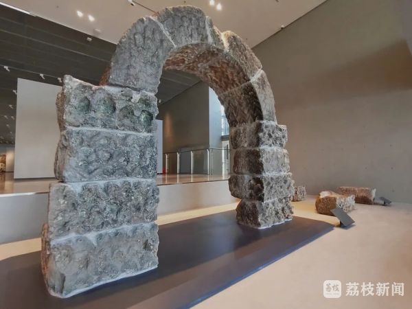 初入南京城墙博物馆大厅,一座精巧而巨大的石刻构件映入眼帘,使得博物馆的历史感与厚重感扑面而来。这是一座拱形石构件,层层叠加,形成拱门,似乎是一个通向认知城墙的券门。