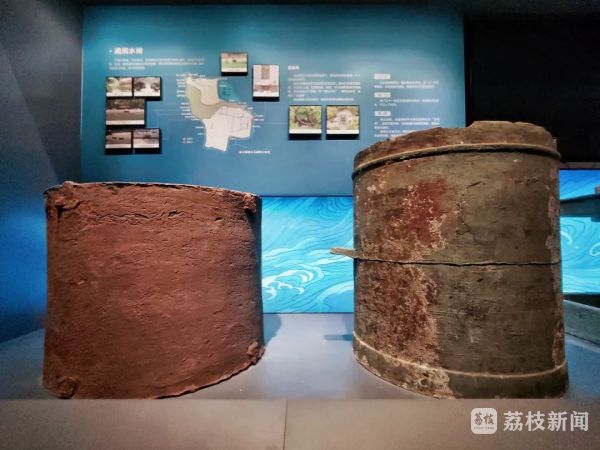 展厅内有三件水关涵闸的文物,其中两个桶状物看似平平无奇,其实是明代水系流通中重要的铜涵管和铁涵管,直径都有一米左右。