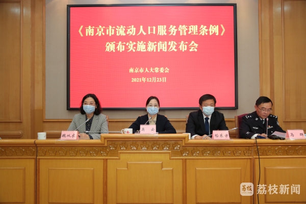 流动人口是城市经济发展和社会建设的重要参与者。截至2020年12月,南京全市登记在册的流动人口达375万人,如何发挥好法治优势,更好为“新南京人”们做好服务管理工作?12月23日上午,南京市人大常委会举行《南京市流动人口服务管理条例》(以下简称条例)颁布实施新闻发布会,解读条例的立法背景、特色亮点及贯彻落实相关举措等。据了解,条例由南京市第十六届人大常委会第三十三次会议通过、江苏省第十三届人大常委会第二十七次会议于2021年12月2日批准,即将于2022年1月1日起正式施行。