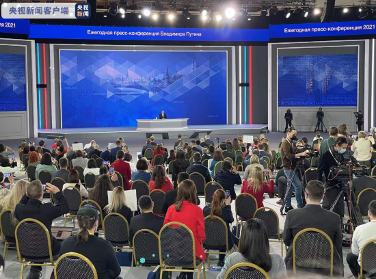 当地时间12月23日12时12分,俄罗斯总统普京在马涅什展览中心举行2021年度记者会。在记者会上,普京表示,预计今年俄罗斯国内生产总值(GDP)增速达到4.5%,失业率目前已降至4.3%至4.4%,低于新冠疫情前的水平。