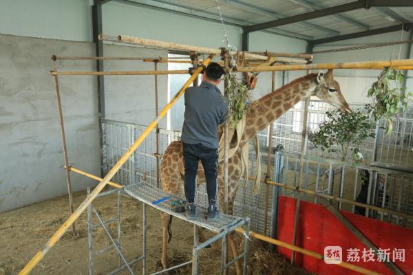 由于长颈鹿天性胆小、性情敏感等因素,园区将其隔离治疗。在独立的笼舍中由专业医疗团队定时定点观察照看。在大家的悉心照顾下,目前受伤长颈鹿的饮食已经逐渐恢复正常。经园区动物救护专家组决定先将其救护固定措施拆除,在脚手架拆除后,长颈鹿已经能够正常站立行走。动物园打算等它日后情绪稳定再逐步放出笼舍和游客见面。