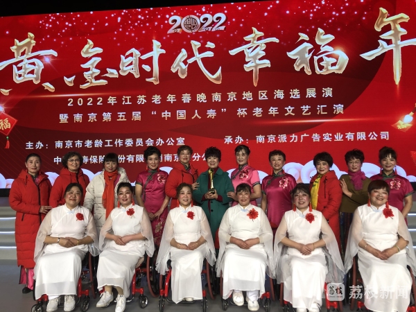 在12月22日举行的2022年江苏老年春晚南京地区展演暨南京第五届“中国人寿”杯老年文艺汇演中,有一个特殊的队伍,她们是南京太阳花残疾人文体队,她们的魅力演出感染了现场的每一位观众,也得到了评委专家的一致好评,最终,被授予“金梧桐奖”。