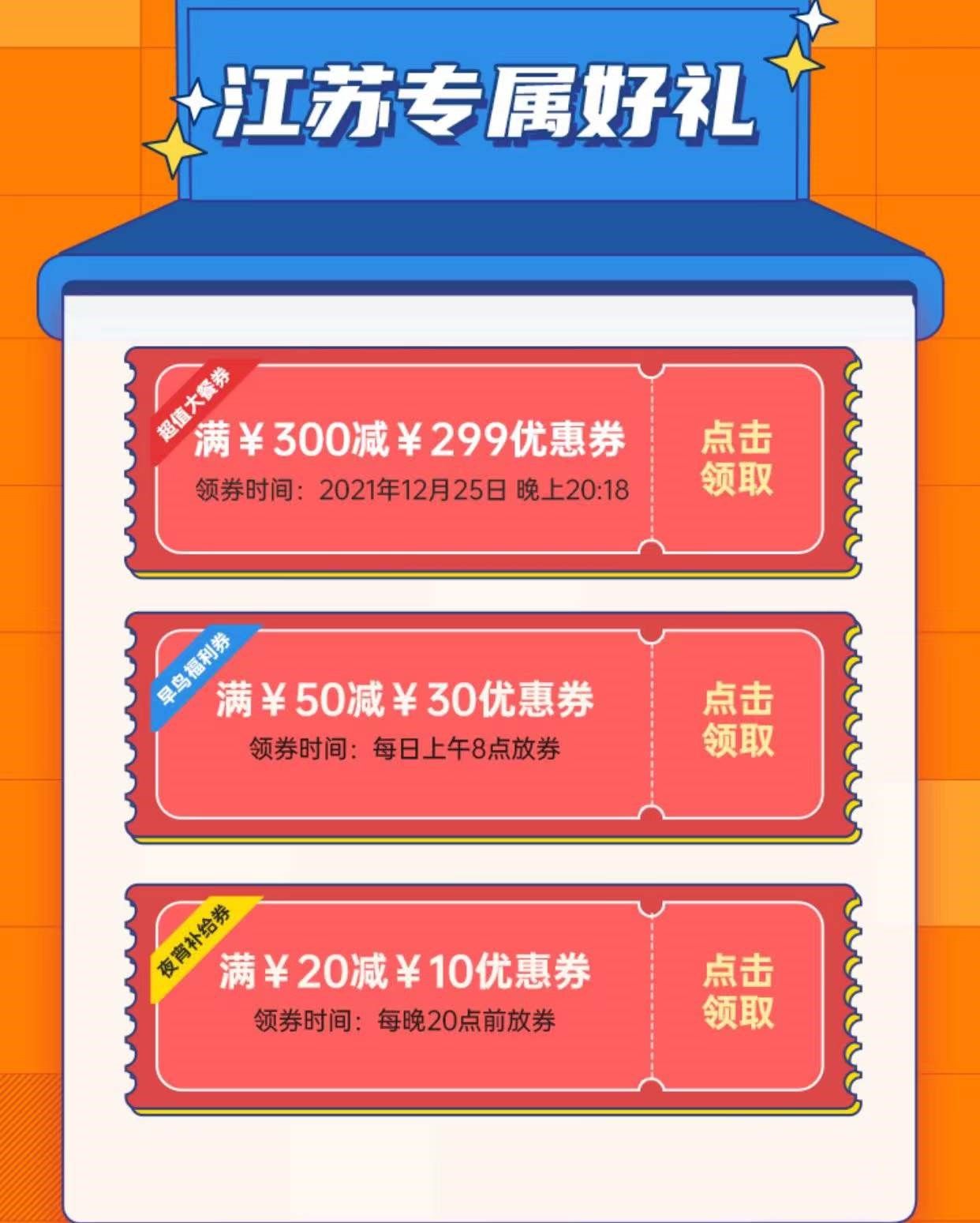 16日-31日,每天早晨8点,建行生活APP的江苏省注册用户可以在活动页面领取零食狂欢节满50减30元的早鸟福利券。每天发放哦,每人每天限领1张。每天晚上8点,可以在活动页面领取满20立减10元的夜宵补给券,每天晚上发放哦,每天!早鸟券和夜宵券都是先到先得,手慢只能怪网速了~