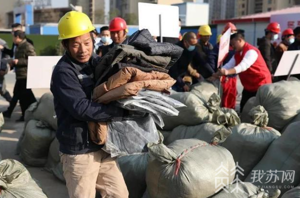 在镇江,爱心单位、爱心团队及志愿者为20个建筑工地的务工人员捐赠了1万件棉衣。