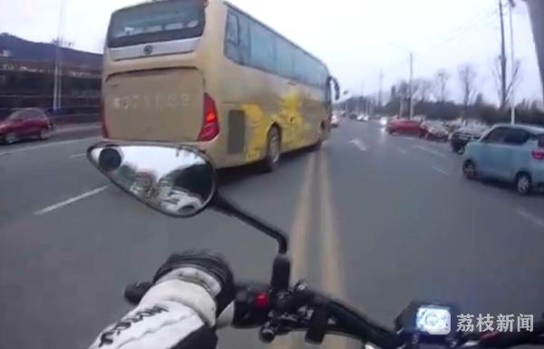 陈铭辉:“摩托车驾驶员存在两个违法行为,走非机动车道还有压实线,一共罚150元记3分,大巴车驾驶员也一样,也是罚150元记3分……要相互礼让,不要因为一点点小事情就开斗气车,非常危险,对车上的乘客也不负责。”