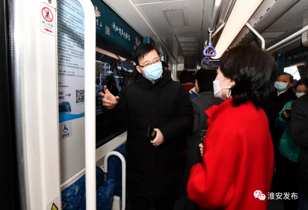 陈之常来到有轨电车体育馆站,听取书香淮安建设情况汇报,并乘坐有轨电车实地了解淮安书房喜马拉雅流动有声图书馆项目情况,通过手机扫码收听流动有声图书馆内容。他详细了解流动有声图书馆的内容种类、更新频率等情况。