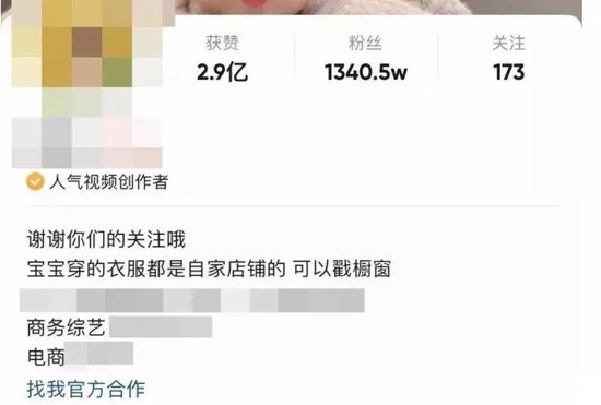 在一些儿童短视频账号主页,大多可以看到“好物推荐”“找我官方合作”等标识。有运营儿童短视频账号的家长表示,靠娃就能月入15万元。