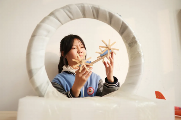 兴趣是开启知识大门的钥匙。郝茜米从小就对机械充满好奇,为了弄清机械运行的原理,她翻阅书籍、动手摸索,家里玩具常常被她拆得“支离破碎”。进入学校科学团队后,便开启了她的科研之旅。她善于思考、勇于创新,在各种机器人、航模、微视频等科技竞赛中均获得优异成绩。