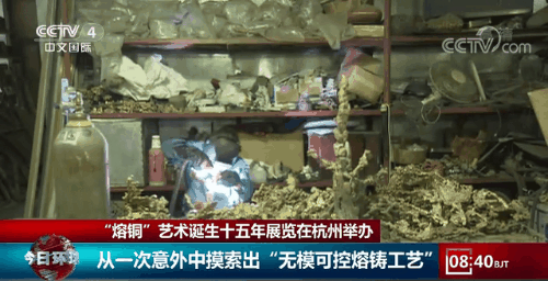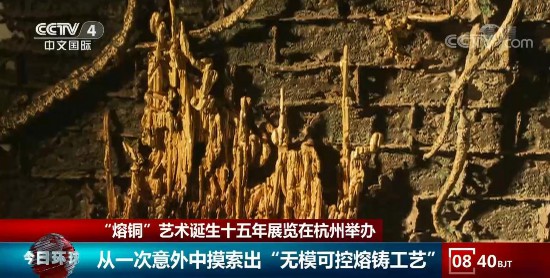 国家级非遗铜雕技艺代表性传承人 中国工艺美术大师 朱炳仁:铸铜都是在模具里面形成的,“熔铜”它就是跳出模具,它就是铜在熔化过程当中自由流淌,形成特有的自由流淌的肌理和形态。这种肌理和形态通过艺术家对它的控制,所以我们称“熔铜”艺术为“无模可控技艺”,它每一件的作品都是独一无二的。
