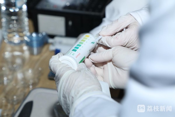 在江浦街道快检室人员的陪同指导下,学生志愿者们还对学校食堂开展了“你点我检”活动。快检人员对原材料进行取样,新晋“浦公英”们在快检台前进行配合,将样品切段放入试剂中做预处理,再由专业检测人员利用快检设备进行检测,十多分钟后,大家一同见证了学校食堂食材的安全性。