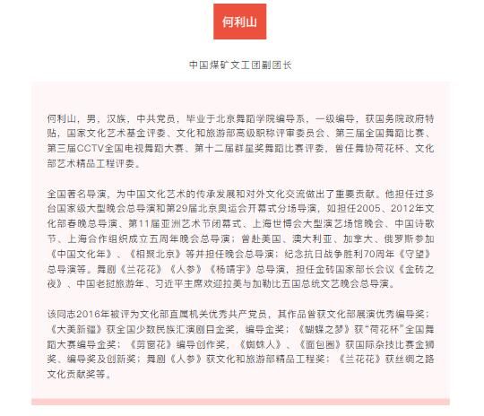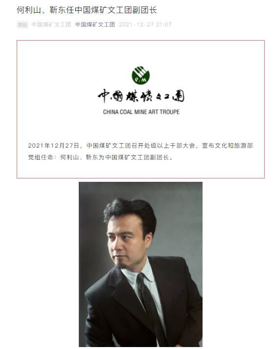 荔枝新闻讯 据“中国煤矿文工团”微信公号消息,2021年12月27日,中国煤矿文工团召开处级以上干部大会,宣布文化和旅游部党组任命:何利山、靳东为中国煤矿文工团副团长。