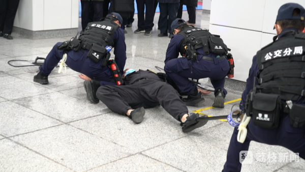 眼前的画面就是徐州市反恐办和市公安局反恐支队举办的一场反恐演练,一名男子在徐州乔家湖地铁站拒绝配合安检,并手持斧头对抗反恐民警,被反恐民警当场制服。