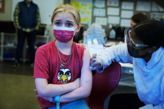 当地时间2021年11月8日,美国华盛顿特区,当地孩童接种新冠疫苗。 视觉中国 图