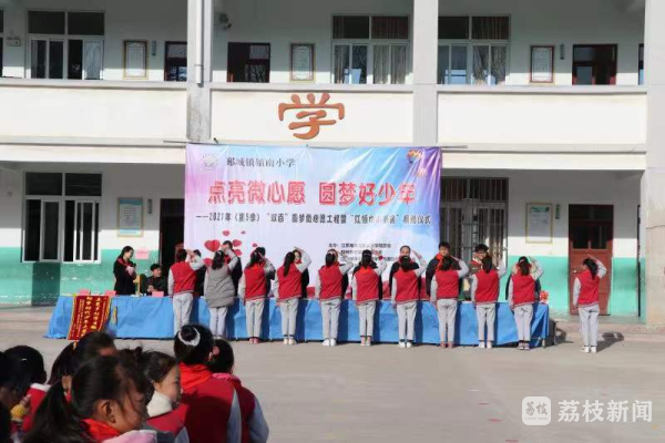 近日,江苏邳州邳城镇镇南小学来了一群志愿者,他们带着孩子们喜欢的礼物,送来了爱心和温暖。这群志愿者是江苏海洋大学的大学生和邳州唯爱公益的志愿者,由邳州团市委牵头,举办了“微心愿”圆梦仪式。