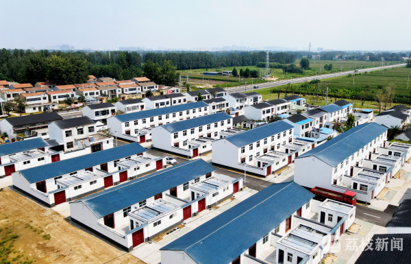 坚持系统谋划,精致擘画大美朱尧新蓝图。孙楼街道朱尧新型社区位于复新河东畔,南邻237国道,西接子午河旅游观光路,地理位置优越。总建设用地127亩,共计284户,户均建筑面积171平方米,健身活动场地600平方米,公共绿地800平方米,容积率为0.56,绿化率35%,公共停车位158个。依托2019年省级抗震安居示范工程打造,朱尧新型社区围绕“一核、三带、八区”整体旅游规划布局,以良好的滨水生态基底为特色,以田园乡居、产业配套、生态游憩为主要功能,形成了水韵、林荫、匠意的田园生态新居,并承载县域生态旅游服务节点的功能,形成生态农游与新兴社区相结合、展现新农村新风貌新生活的示范工程。未来将引导村民通过发展农家民宿等形式实现增收,打造成“有看头、有赚头、有奔头”的宜居乡村样板。
