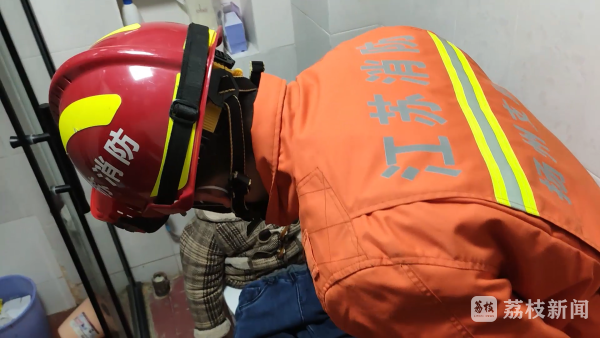 随后,消防员对幼童被卡部位进行检查,当发现幼童被卡部位和马桶圈尚有一丝缝隙后,消防员开始询问幼童是否疼痛。几经考虑,在确保幼童不会受伤的情况下,消防员尝试一点一点的将幼童从马桶圈上拉出来。历时10分钟后,幼童被消防员成功解救。
