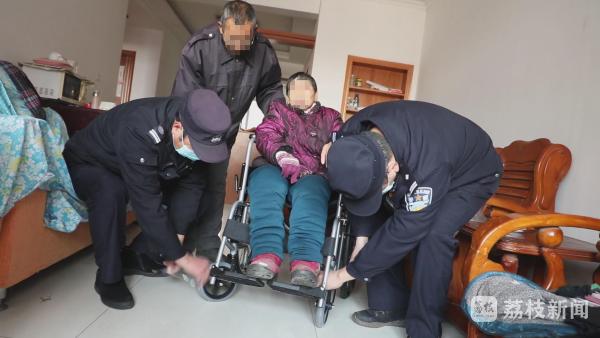 邹奶奶看到民警送来的轮椅,满是皱纹的脸上挂着难以掩饰的喜悦,她坐在崭新的轮椅上兴奋了好一阵子,嘴里说着:“感谢共产党、感谢民警。”