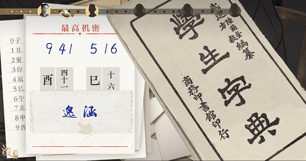 严谨可考的细节,是填充作品还原感的重要部分:首页下方的摩斯电码,系根据文案实际编译而得;卢志英剧情中,用于传送情报的《学生字典》,来自1928年商务印书馆出版存世的实物;用明矾、碘化钾密写情报的手段,均在历史上真实运用;沈世猷妻子所穿旗袍,是参照其子女展示的实物绘制而成。