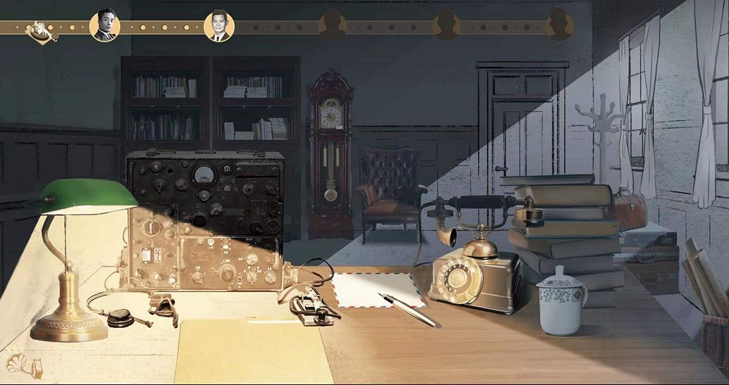 在交互体验上,画面模拟观者的第一视角,采用推、拉、跟、移等电影式运镜,融入发报声、火车鸣笛声、敲门声、座椅声等音效渲染临场感,力求使观者沉浸于历史场景。