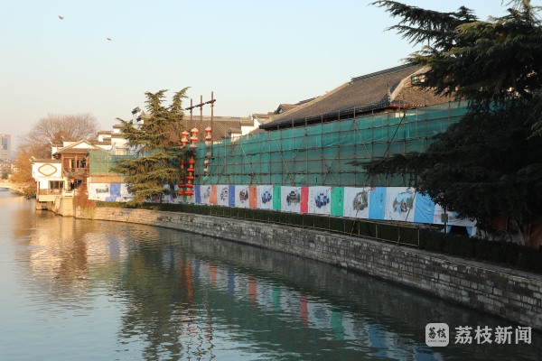 今天(12月30日)中午,在夫子庙秦淮风光带,距今400多年历史被誉为“天下第一壁”的南京夫子庙大照壁正在整体围挡施工中,工人们冒着严寒在工地上忙碌着,以崭新的面貌迎接2022虎年。