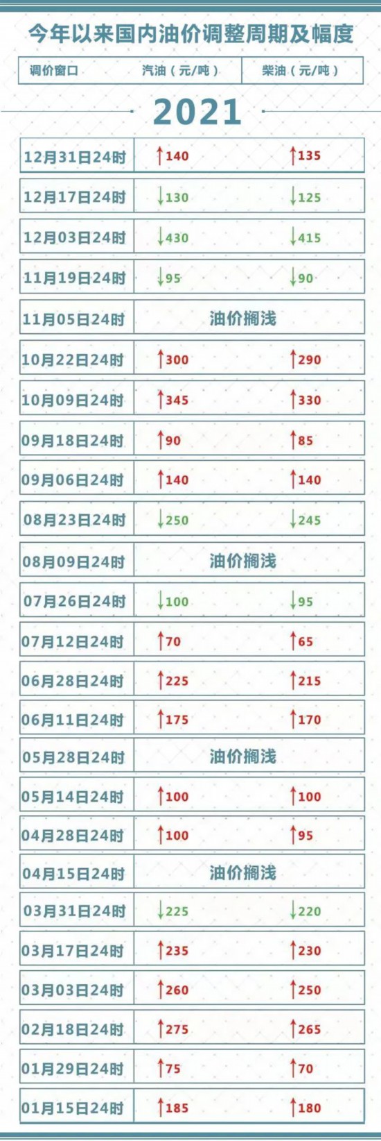 2021年,国内成品油调价已呈现“十五涨六跌四搁浅”的格局。截至本次调价,汽油价格累计每吨上调1485元,柴油价格累计每吨上调1430元。