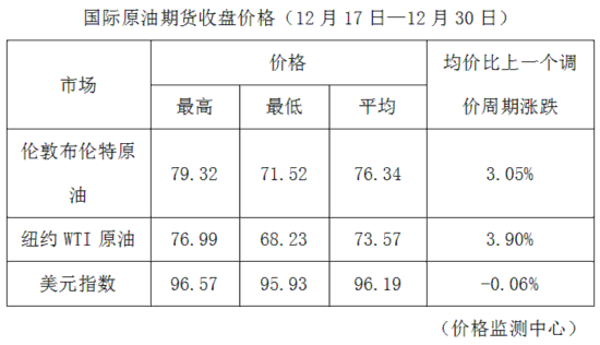 据国家发改委价格监测中心监测,本轮成品油调价周期内(12月17日—12月30日)国际油价震荡上涨。平均来看,伦敦布伦特、纽约WTI油价比上轮调价周期上涨3.48%。受此影响,国内汽油、柴油零售价随之上调。