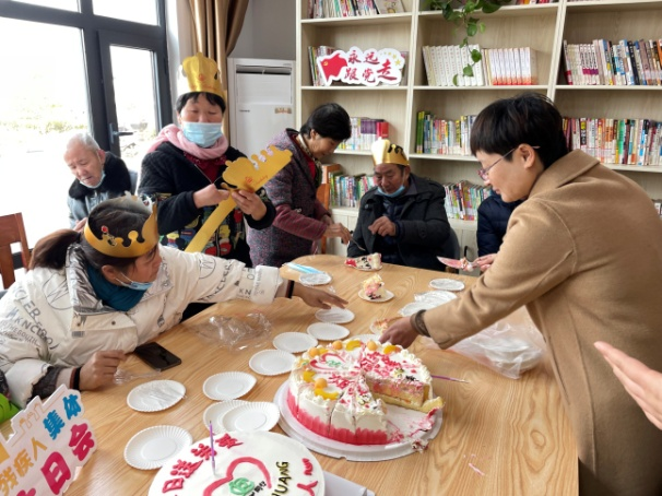 77岁的残疾人苏杏亨听到大家为他唱起的生日祝福歌后流下了激动的热泪,“这是第一次有人为我唱生日歌,吃到定制的生日蛋糕,让我终身难忘!”。(来源:江苏广电无锡中心站/徐恺言)