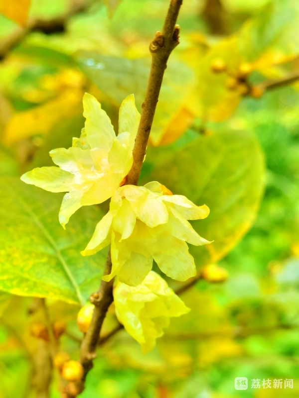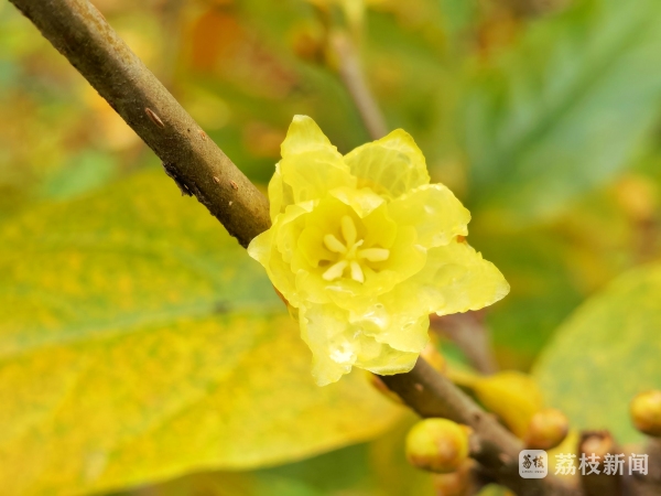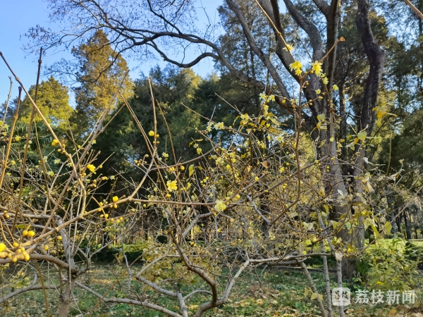 目前明孝陵景区开花的蜡梅大多是早花品种,通常情况下,叶子差不多掉光后开始开花,但是今年冬季以来,低温天气持续时间偏短,突然的降温会促使蜡梅开花,因此会出现“花叶同枝”的现象。