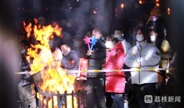 灯火璀璨宝华山、燃起篝火迎新年。昨夜(2021年12月31日)今晨,江苏句容宝华山千华古村里灯光璀璨,人们燃起熊熊的篝火,赏民俗、看演出。大家载歌载舞,在欢乐喜庆的氛围中迎接新一年的到来。