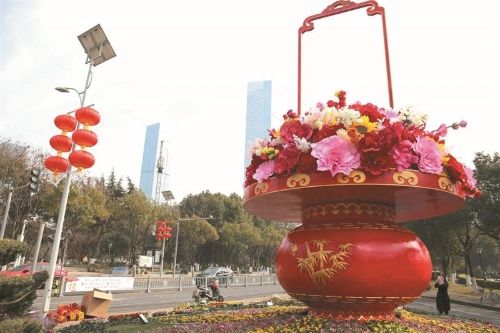 夜晚绚丽多彩,白天自是繁花似锦。隐秀路与金水路交叉口“大变样”,绿坡之上是用仿真植被装饰而成的花篮造型立体花艺绿雕,花篮造型雅致,满篮花团锦簇、色彩斑斓,搭配下方层层涟漪草花图案的花坡,形成一处极具节庆氛围和视觉冲击力的街角绿地节点。这处节点的主题是“繁花似锦·风华正茂”。今年滨湖区元旦期间规划设计了18个花坛,其中6个是大型景点,“一路一景”,市民朋友们可以去现场观赏。