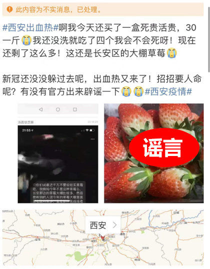 站方再次提醒,对于制造和传播谣言信息造成重大社会影响的,站方将及时采取措施,并提交违法线索至相关部门;广大网民用户,请提升辨别能力,不造谣、不信谣、不传谣。欢迎大家对网络谣言进行投诉,投诉方式:1.提交投诉至“不实信息”;2.提交线索给@微博辟谣 ;3.直接带话题词 #微博辟谣# 传播辟谣内容。让我们共同携手,一起为西安加油!