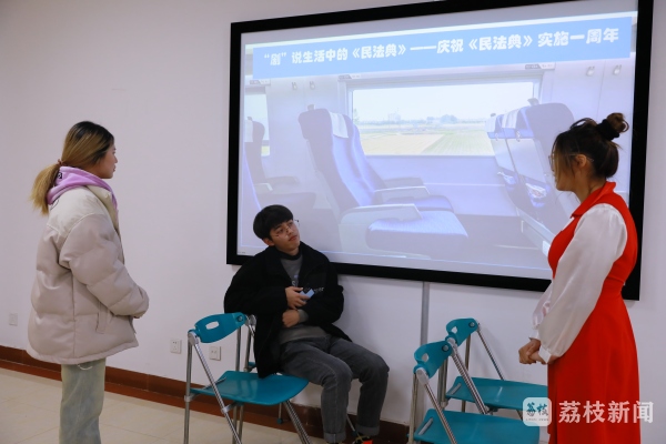 昨天(1月2日),伴随着此起彼伏的笑声,一场特别的活动在常州机电职业技术学院进行。在《民法典》实施一周年之际,该校轨交运营专业3个班级的同学开展“‘剧’说生活中的《民法典》”系列活动,演绎发生在身边的真实故事,用情景剧的形式展现《民法典》是如何“典”亮生活的,如高铁“霸座”、高空抛物等。