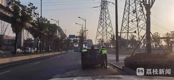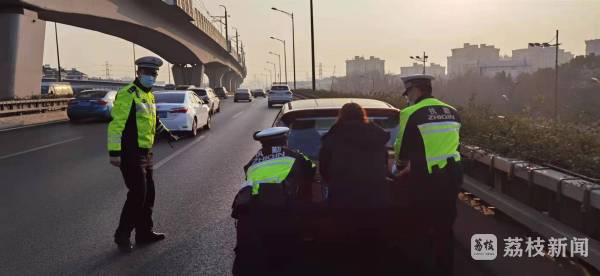 1月3日下午4点左右,南京市公安局江北新区分局交警支队二大队正在江北大道沿线巡逻时,见前方有一打着双跳的小车在快速路上停止不动,造成后方车辆通行缓慢。