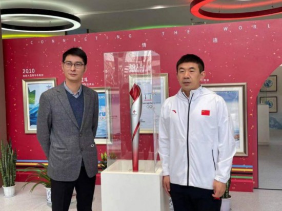 开幕式现场,李佳军带来了2022年北京冬奥会,从希腊古奥林匹亚遗址采集圣火传递到中国的第一棒火炬——“飞扬”。火炬外形极具动感和活力。颜色为银色和红色,象征冰火相约、激情飞扬、照亮冰雪、温暖世界。