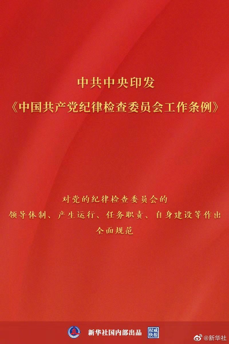 近日,中共中央印发《中国共产党纪律检查委员会工作条例》。《条例》共8章59条,对党的纪律检查委员会的领导体制、产生运行、任务职责、自身建设等作出全面规范。