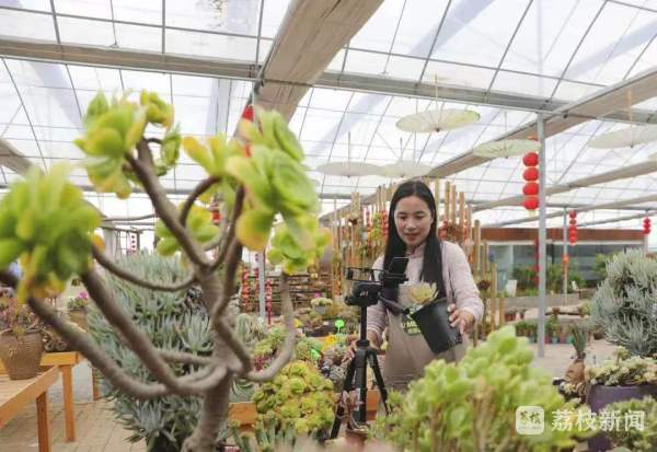 “当时镇上的人都很紧张、害怕、担忧,因为之前没接触过别的行业。但塑料加工这门生意存在一定的污染,我一直想着转型。减少污染,让天更蓝,水更绿,是造福子孙后代的大事。”2016年,李平夫妇率先响应政府“让天更蓝、水更绿”的号召,放弃原有的塑料加工事业,选择二次创业,转型到园艺种植。短短几年时间,李平实现了华丽转身,她与丈夫创办了江苏育美森生物科技有限公司,从事高端多肉种植、栽培、线上销售及有机肥生产、销售。李平不仅掌握了400多种多肉植物的种植技巧,还瞄准时尚经济,将视线投入到“互联网+农业”这一领域,率先在淘宝平台直播带货销售多肉,李平也成为了当地小有名气的网红。