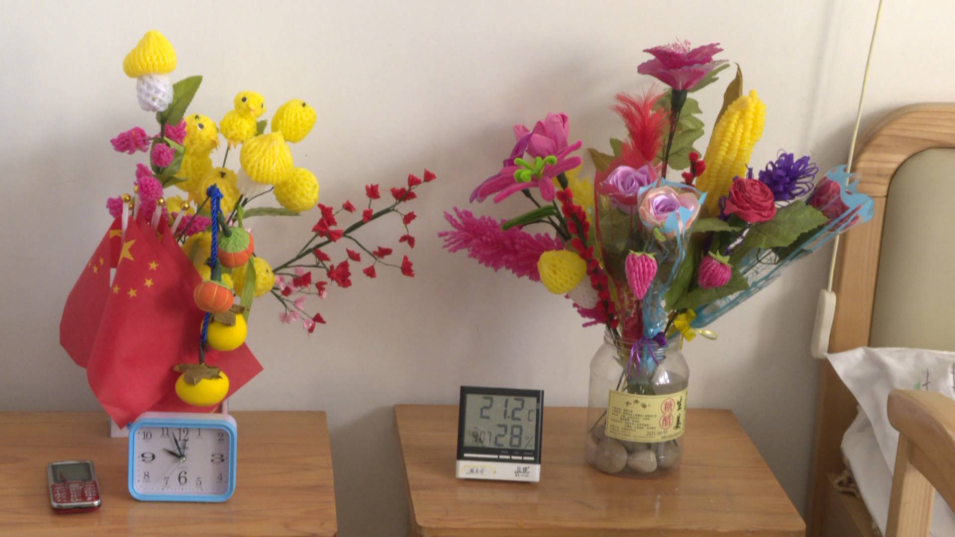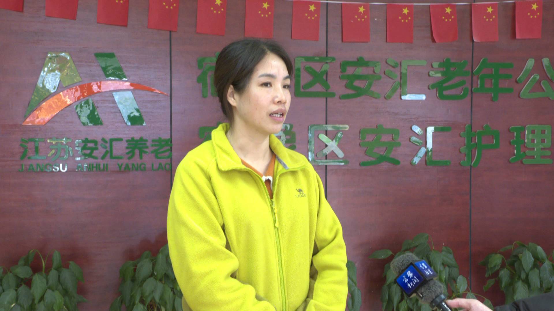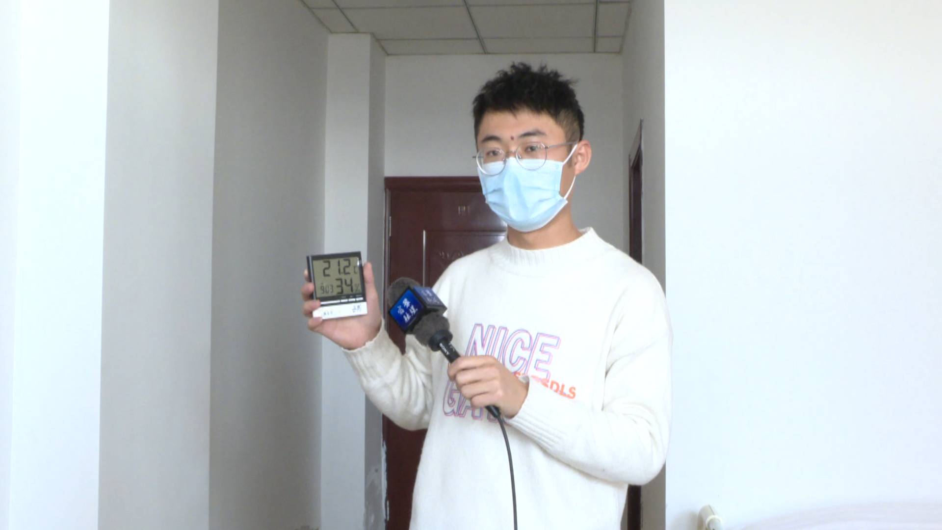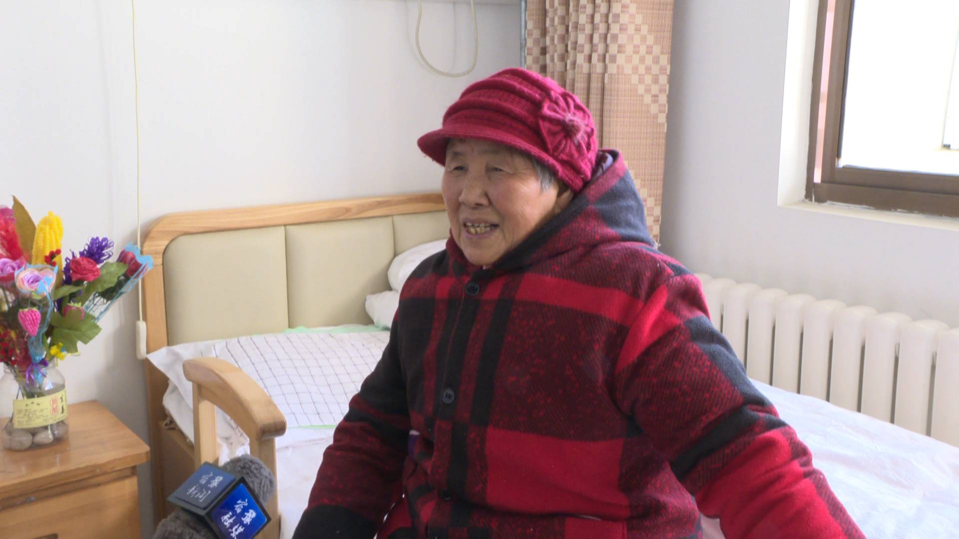 记者申亚东:“我现在是在安汇老年公寓李奶奶的房间里,现在的室外温度是0℃左右,比较寒冷。但通过我手里的温度计可以看到,现在的室内温度是21.2℃,非常适宜老人居住。”