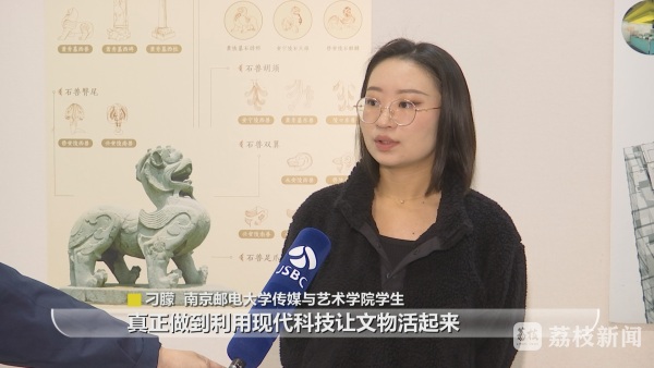 南京邮电大学传媒与艺术学院学生刁朦介绍:“本项目的亮点是基于现状保护的研究,利用现代科技对南朝石刻进行数字化的建设与展示设计研究,真正做到利用现代科技让文物活起来。”