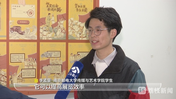 南京邮电大学传媒与艺术学院学生李孟豪介绍:“虚拟展馆相比于传统展馆,它可以提高展览效率,降低展览成本,扩大传播范围,可以让人们身临其境地体验到建党的艰辛历程。”