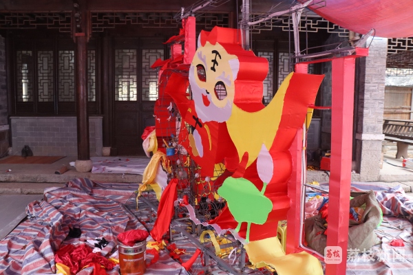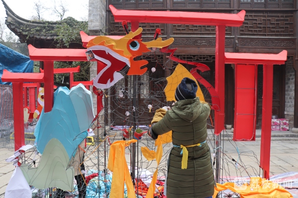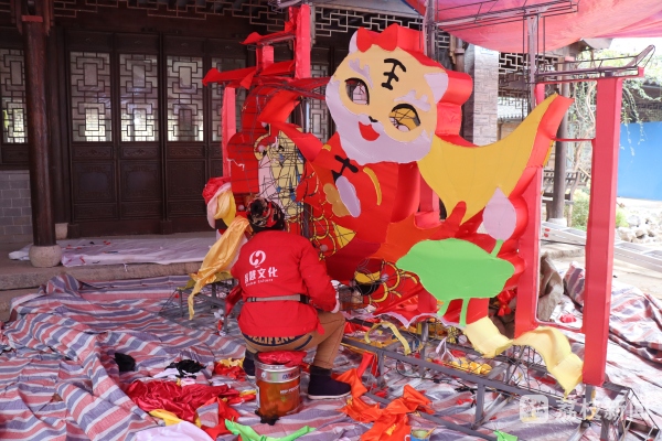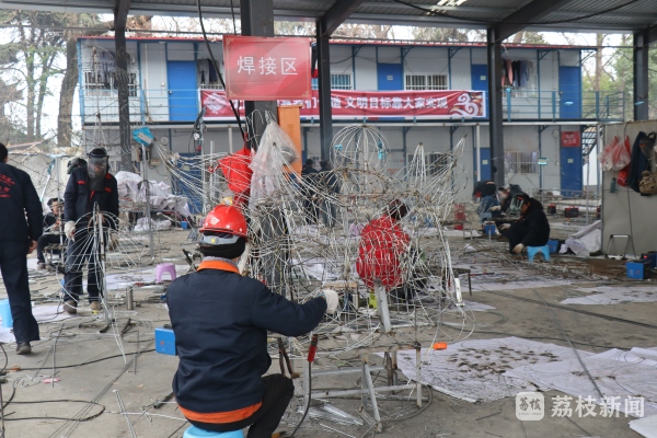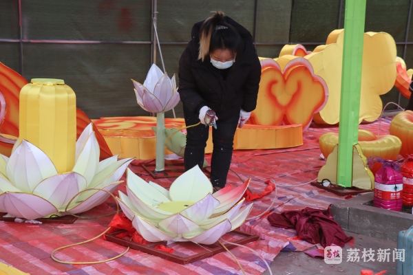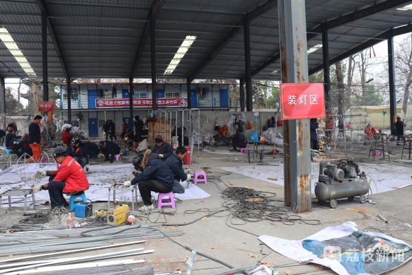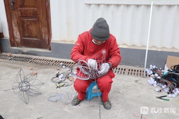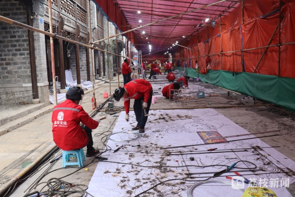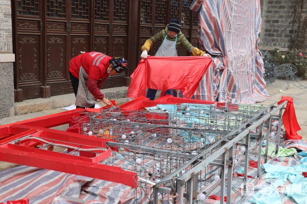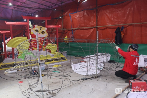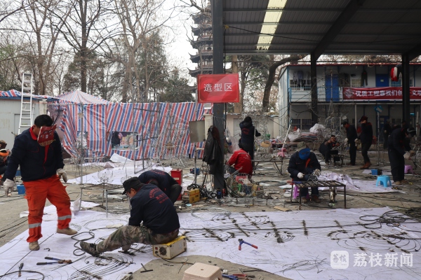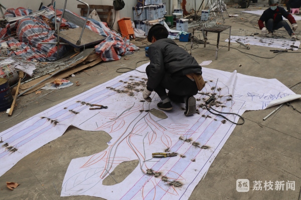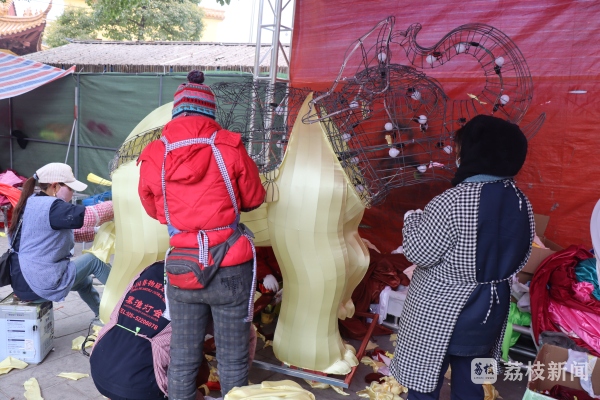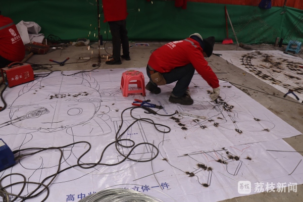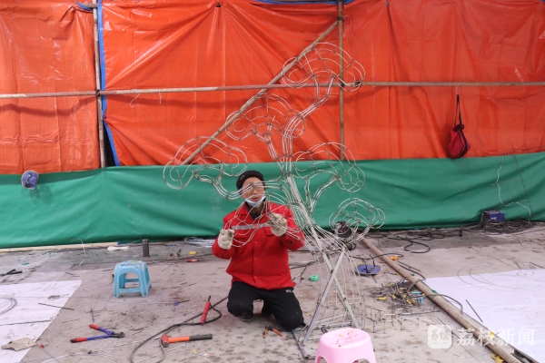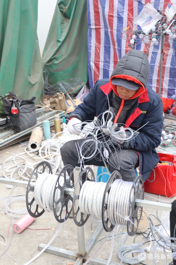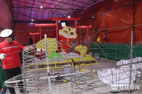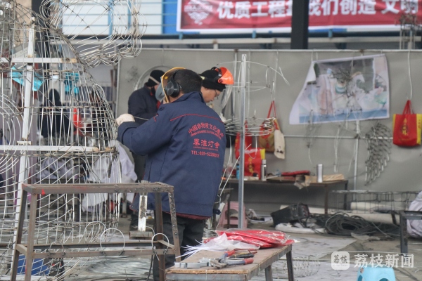 离春节还有不到一个月了,4日下午在一处扎制彩灯的地方可以看到工人们正在施工。