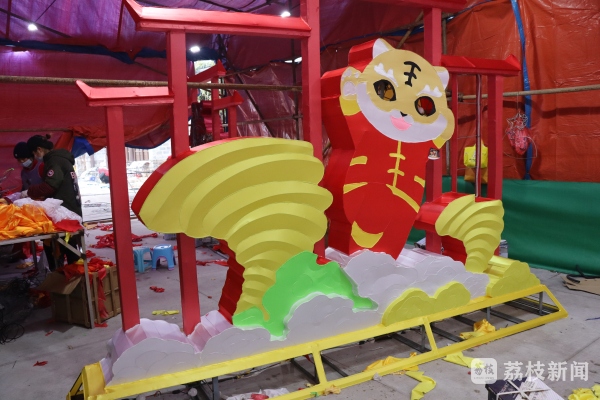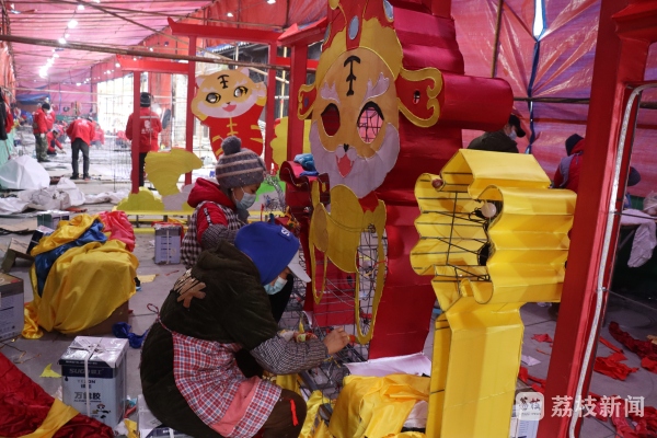 其余还有“天鹅灯”“龙”“马”“虎”等造型各异的彩灯正在扎制中,现场工作人员介绍,今年的灯组制作和往年一样,采取的是“流水线”作业,各司其职,每制作好一个灯组,就会送到相应的安装点,进行实地安装。
