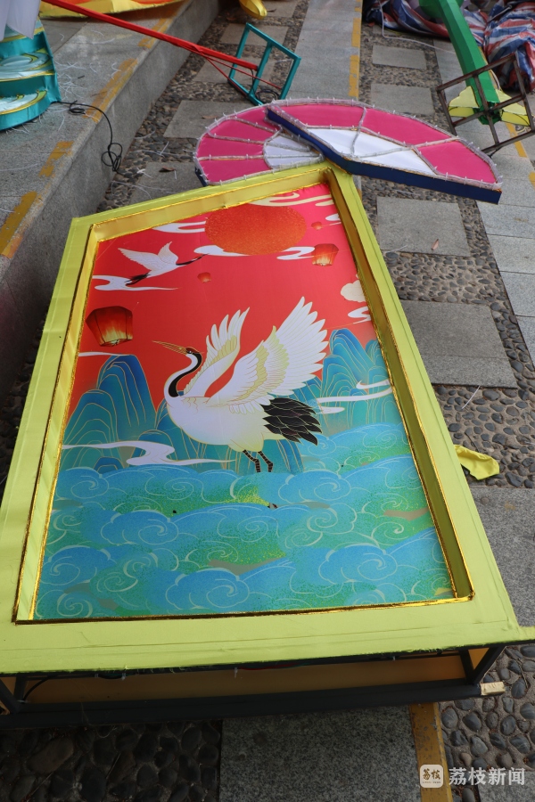 荷花灯一直是秦淮灯会的主力军,在扎制场地,可以看到不少“荷花灯”框架。据了解,这些荷花灯是安装在水里的。