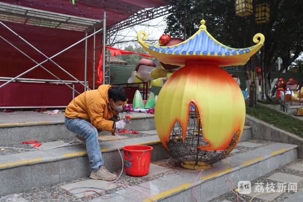 “今年进场迟了点,时间上有点赶,但质量和技术上一点不会比往年差。”彩灯技术人员吴女士介绍说。